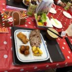 今年のメニューはビーフシチュー、サラダ、パン、コカ・コーラボトリング(株)さんから頂いた紅茶で乾杯しました。ケーキ選び、じゃんけん大会、ビンゴ大会プレゼントを手に取りほっこりした会でした。